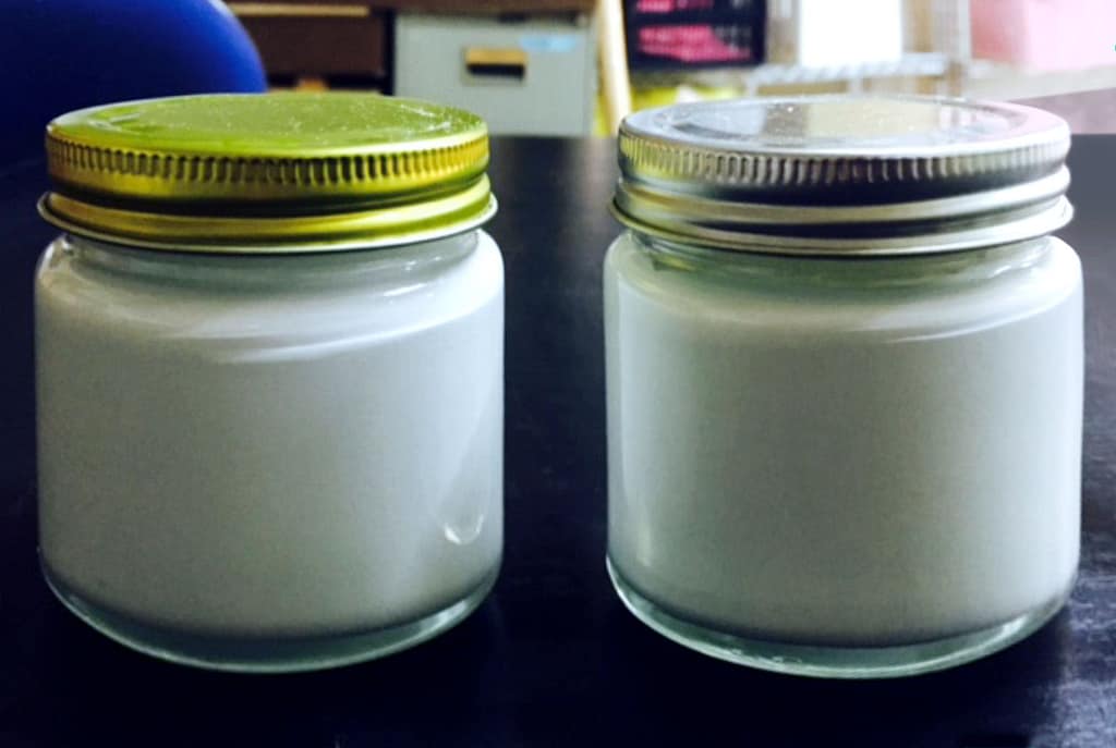 ガラス瓶の容器も同様に塗料を取り出した後、溶剤を入れ蓋を締め撹拌してから内容物を取り出します。